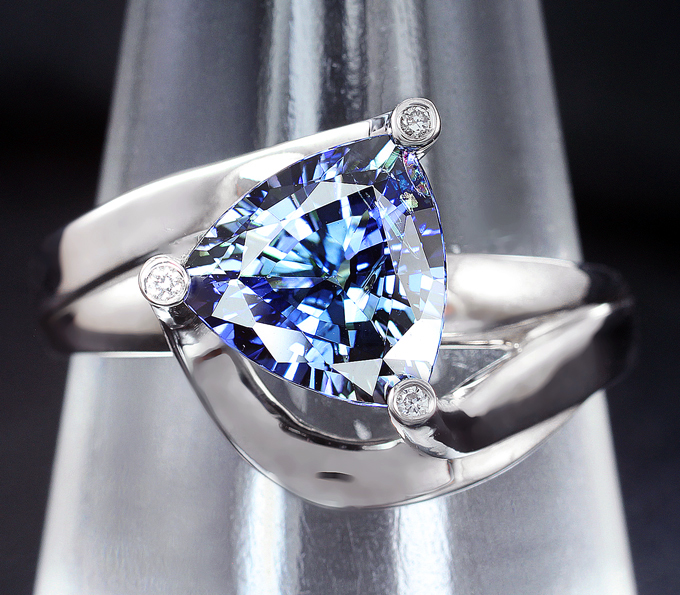 Кольцо с танзанитом 2,28 карата и бриллиантами