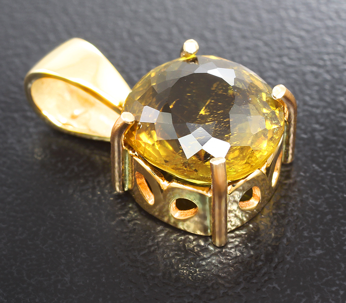 Вашему вниманию предлагается кулон из желтого золота 585 пробы с желтым турмалином! Размеры кулона с петлей 18 х 9 мм. Вес изделия 2,3 г. Ниже приводятся ювелирные характеристики вставки.