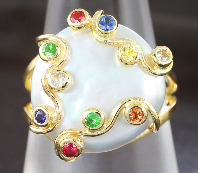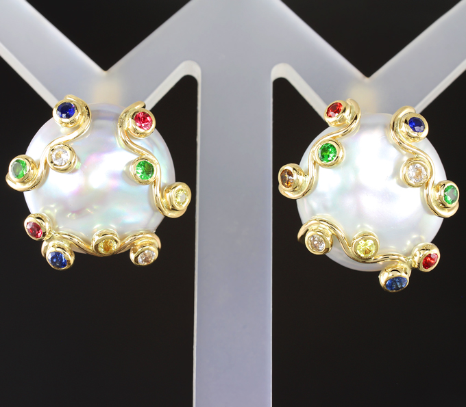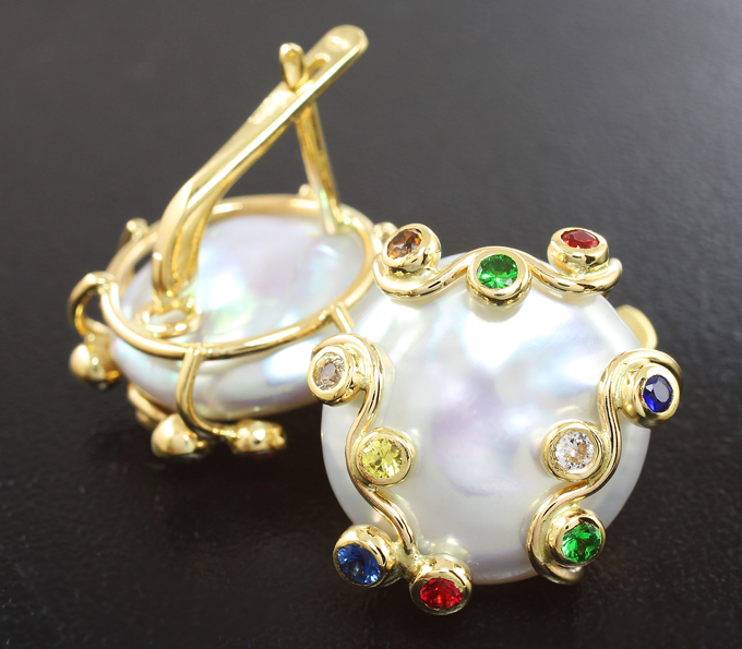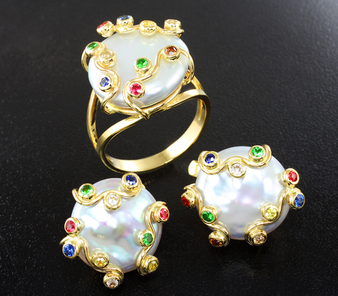 Комплект с морским жемчугом барокко 34,55 карата, цаворитами гранатами и сапфирами
