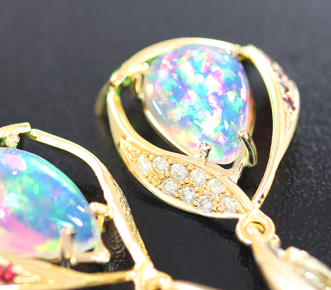 Серьги с эфиопскими опалами 4,64 карата, сапфирами, цаворитами гранатами и бриллиантами
