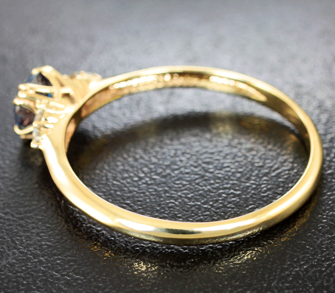 Вашему вниманию предлагается кольцо из желтого золота 585 пробы c уральским александритом и бриллиантами! При смене освещения, камень меняет цвет с голубовато-зеленого на розовый. Площадка 12 х 6 мм, высота 6 мм. Вес изделия 3,1 г. Размер 22,5. Ниже приводятся ювелирные характеристики вставок.