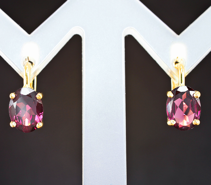 Вашему вниманию предлагаются серьги из желтого золота 585 пробы с родолитами гранатами 2,57 карата! Размеры вставок 8 х 6 мм. Размеры серег с петлей 12 х 6 мм. Вес пары 2,7 г.