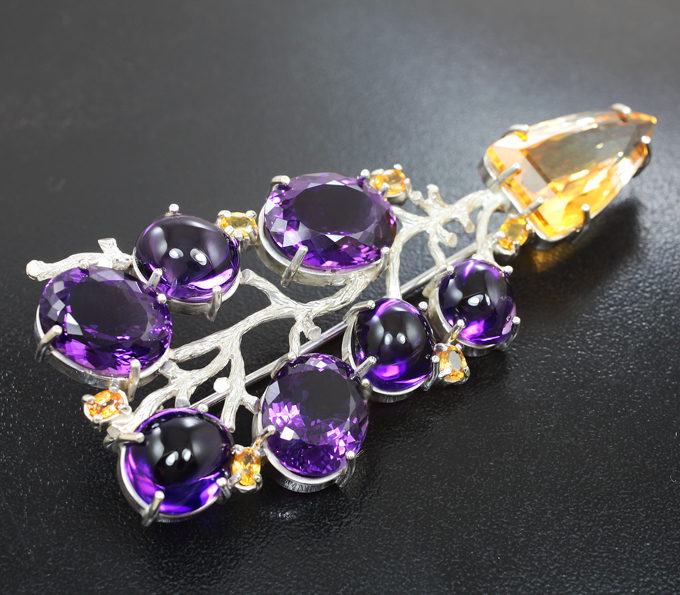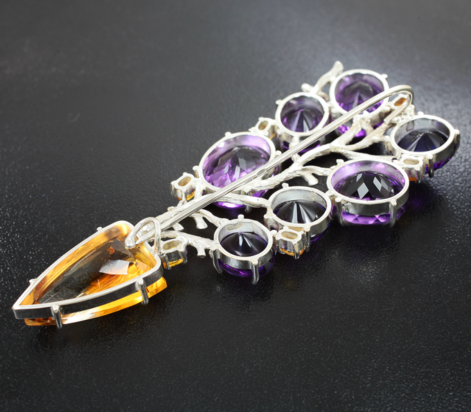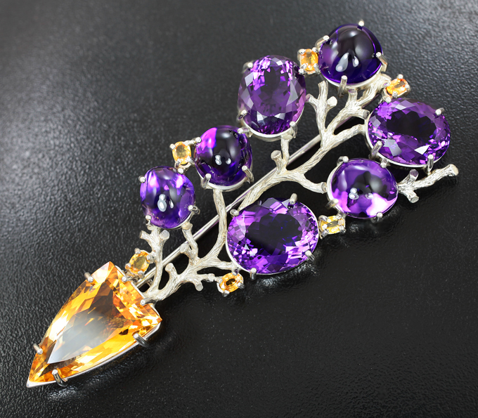 Брошь с цитрином 17 карат, аметистами 20,1 карата и желтыми сапфирами