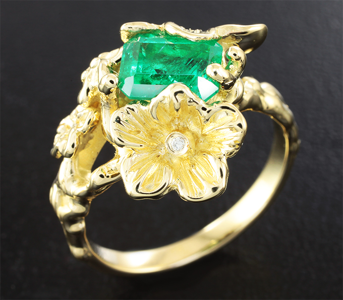 Кольцо с изумрудом 1,13 карата и бриллиантами