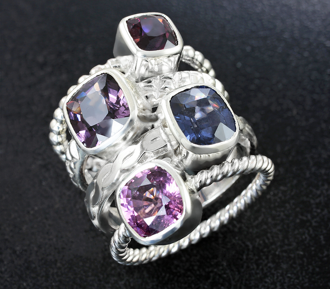 Кольцо с разноцветными шпинелями 7,6 карата