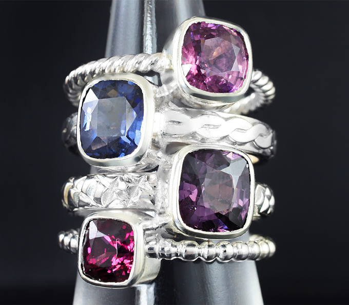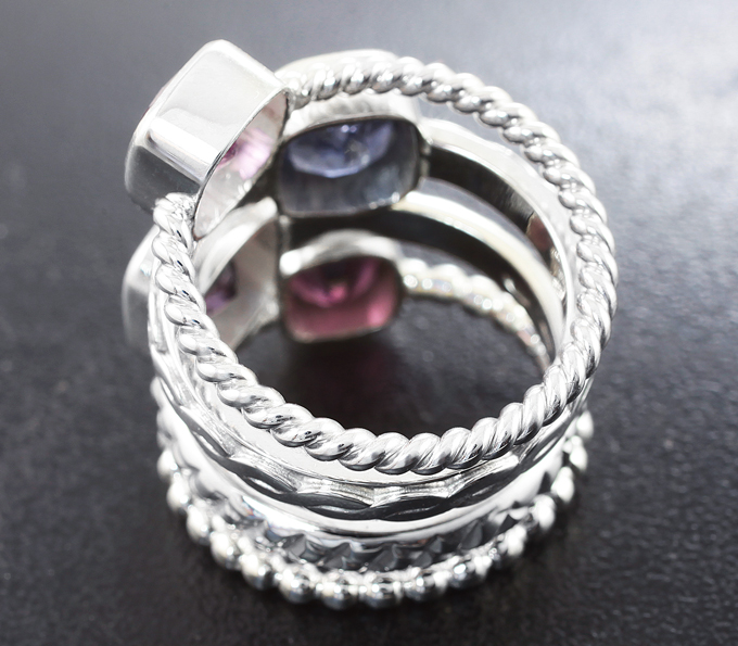 Вашему вниманию предлагается кольцо из стерлингового серебра (925 проба) c разноцветными шпинелями! Ширина площадки 26 мм, высота 6 мм. Вес изделия 11,4 г. Размер 17,5. Ниже приводятся ювелирные характеристики вставок.