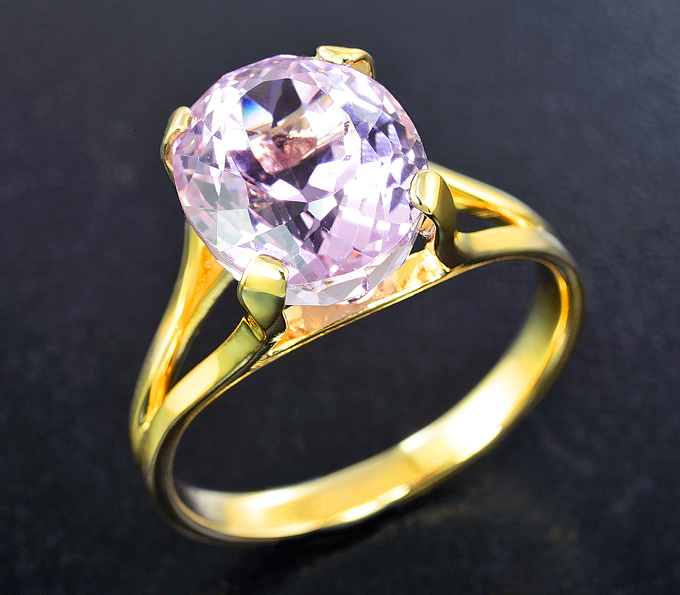 Кольцо с чистейшим розовым кунцитом 6,16 карата