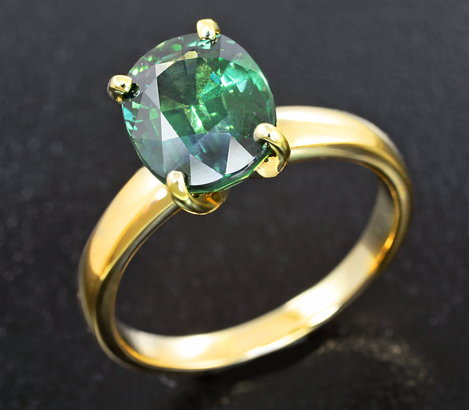 Кольцо c голубовато-зеленым «неоновым» сапфиром 2,97 карата
