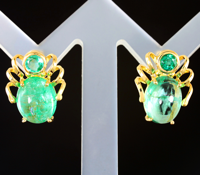 Вашему вниманию предлагаются серьги из желтого золота 750 пробы с уральскими изумрудами 7,71 карата! Размеры вставок 4 мм и 10 х 7 мм. Площадка серег 16 х 13 мм. Вес пары 5,9 г.