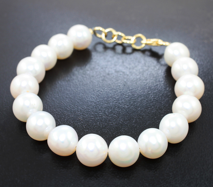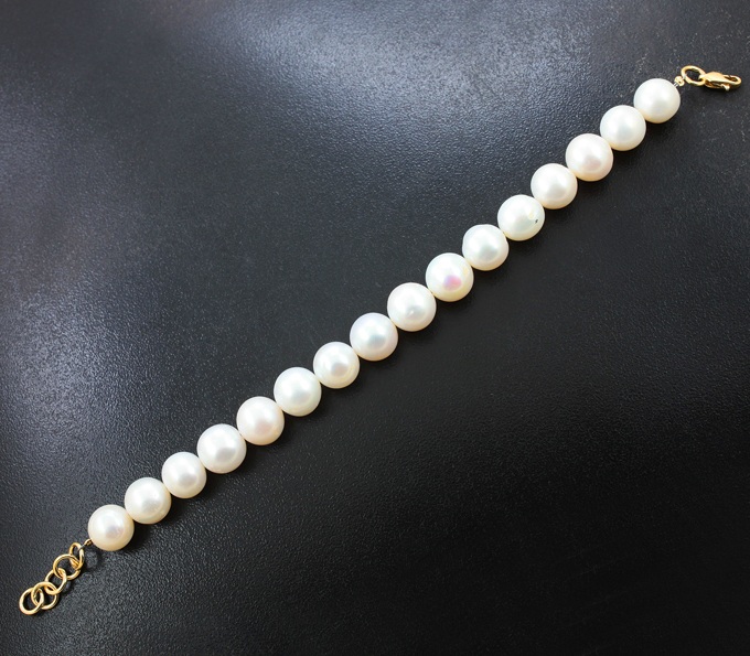 Вашему вниманию предлагается браслет из 16 жемчужин с застежкой из желтого золота 585 пробы! Диаметр вставок 10 мм. Длина браслета регулируемая: от 175 мм до 190 мм, ширина 110 мм. Вес изделия 21,2 г.