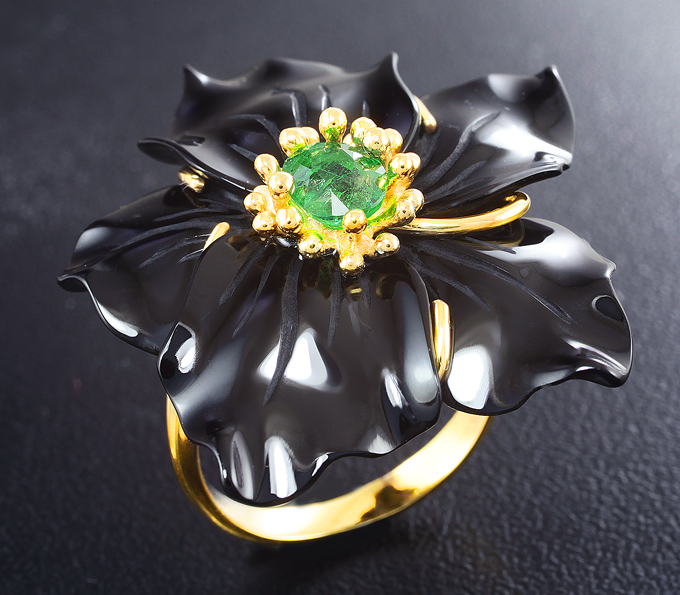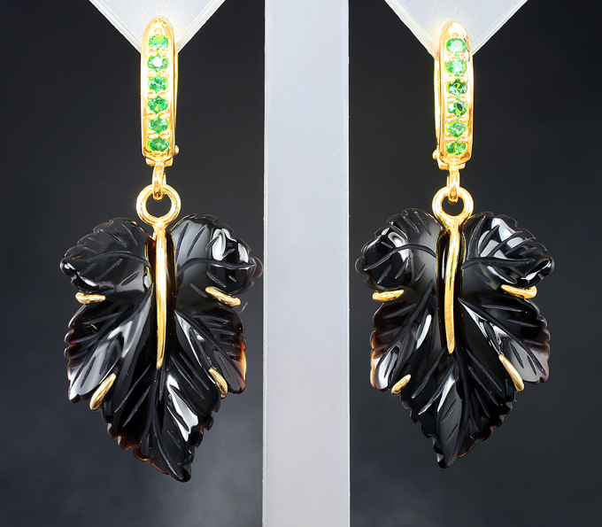 Комплект с резным ониксом и цаворитами гранатами