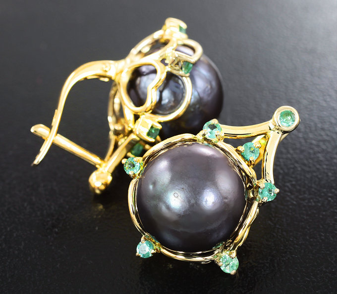 Серьги с цветным жемчугом 24,85 карата и изумрудами
