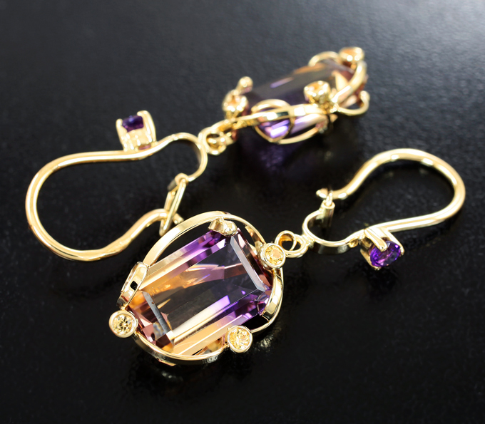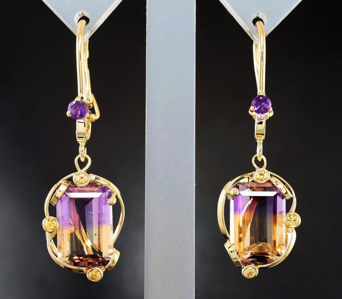 Серьги с контрастными аметринами 10,06 карата, аметистами и желтыми сапфирами