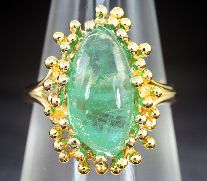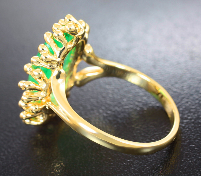 Вашему вниманию предлагается кольцо из желтого золота 585 пробы с уральским изумрудом! Площадка 20 х 14 мм, высота 6 мм. Вес изделия 5,3 г. Размер 17,75. Ниже приводятся ювелирные характеристики вставок.