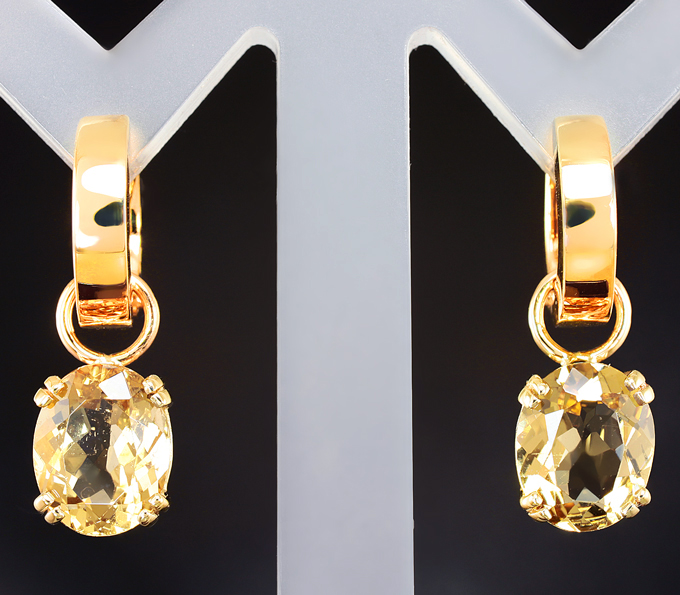 Вашему вниманию предлагаются серьги из желтого золота 585 пробы с гелиодорами 4,58 карата! Размеры вставок 10 х 8 мм. Площадка серег 23 х 8 мм. Вес пары 7,2 г.
