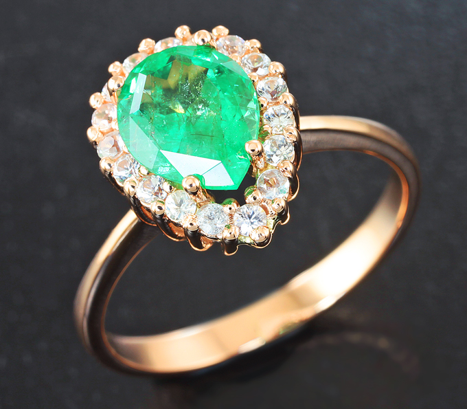 Вашему вниманию предлагается кольцо из розового золота 585 пробы с уральским изумрудом и лейкосапфирами! Диаметр дополнительной инкрустации 1,5 мм. Площадка 12 х 10 мм, высота 7 мм. Вес изделия 2,9 г. Размер 17,75. Ниже приводятся ювелирные характеристики вставки.