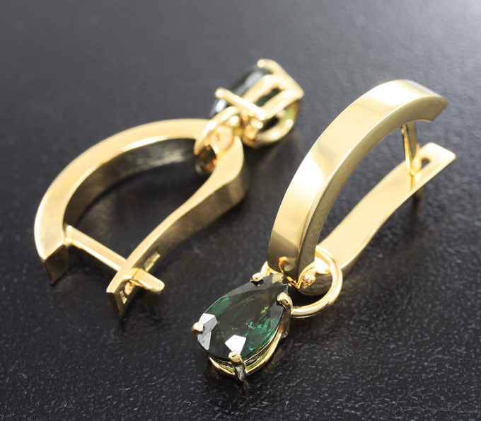 Вашему вниманию предлагаются серьги из желтого золота 585 пробы с гранатами со сменой цвета 2,62 карата! Размеры вставок 9 х 6 мм. Размеры серег с петлей 29 х 6 мм. Вес пары 8,1 г.