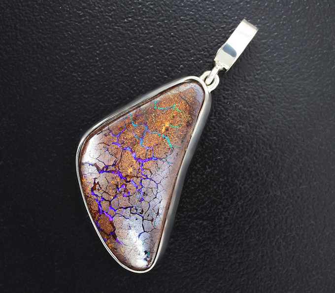 Вашему вниманию предлагается кулон из стерлингового серебра (925 проба) с австралийским болдер опалом! Основные цвета опалесценции: зеленый, синий и фиолетовый. Размеры вставок 26 х 13 мм. Размеры кулона с петлей 38 х 15 мм. Вес изделия 4,5 г. Ниже приводятся ювелирные характеристики вставки.