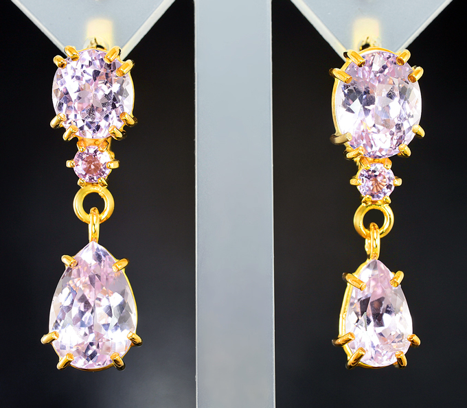 Cерьги с афганскими кунцитами 14,74 карата и розовыми сапфирами