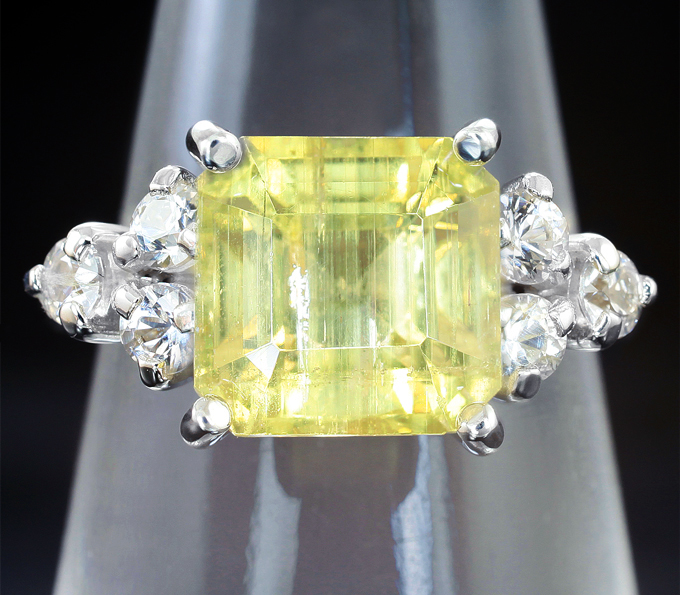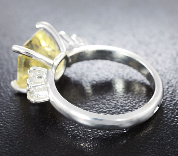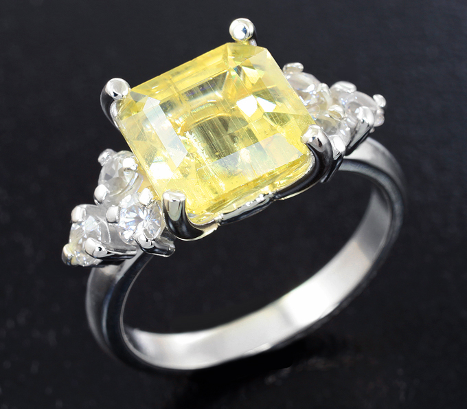 Кольцо c желтым апатитом 4,04 карата и лейкосапфирами