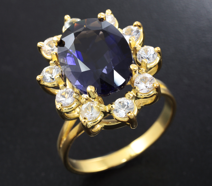 Вашему вниманию предлагается кольцо из стерлингового серебра (925 проба) c иолитом топового качества и лейкосапфирами! Изделие позолочено. Диаметр дополнительной инкрустации 3 мм. Площадка 21 х 17 мм, высота 14 мм. Вес изделия 5,4 г. Размер 19,25. Ниже приводятся ювелирные характеристики иолита.