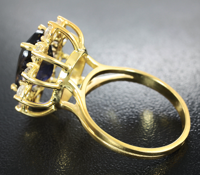 Кольцо c иолитом топового качества 4,98 карата и лейкосапфирами