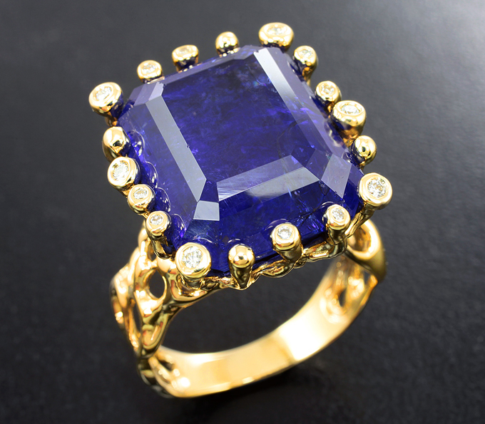 Кольцо с танзанитом 24,13 карата и бриллиантами