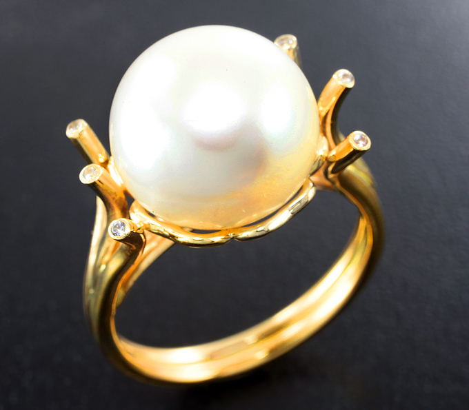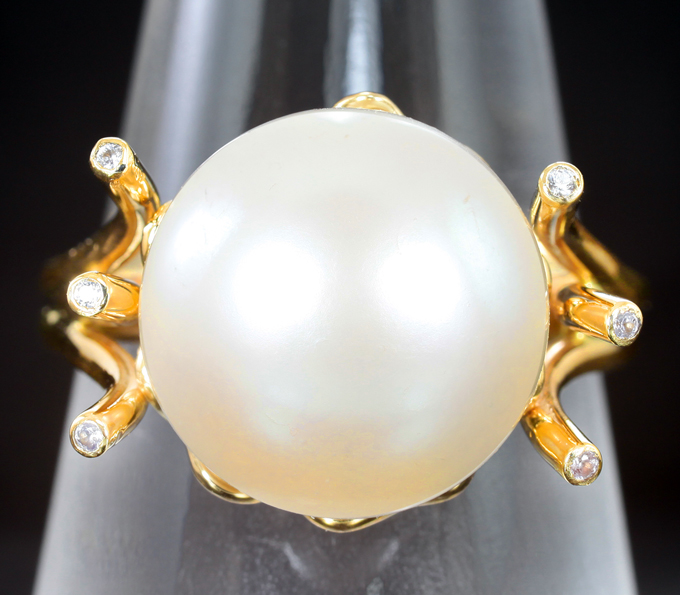 Кольцо с морской жемчужиной 13,74 карата и лейкосапфирами