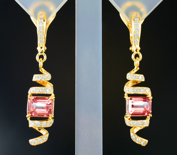 Серьги с апатитами падпараджа 3,03 карата и бриллиантами