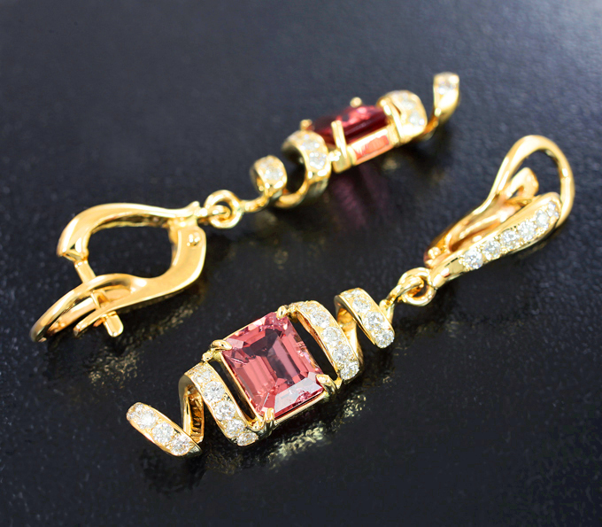 Вашему вниманию предлагаются серьги из желтого золота 585 пробы с апатитами падпараджа и бриллиантами! Диаметр дополнительной инкрустации 1,5 мм. Размеры серег с петлей 39 х 8 мм. Вес пары 6 г. Ниже приводятся ювелирные характеристики апатитов.