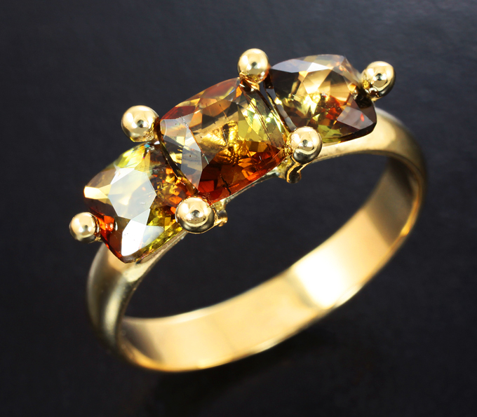 Вашему вниманию предлагается кольцо из желтого золота 585 пробы c андалузитами! Площадка 18 х 7 мм, высота 5 мм. Вес изделия 3,2 г. Размер 17,75. Ниже приводятся ювелирные характеристики вставок.