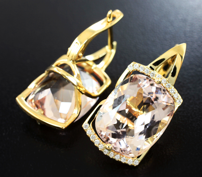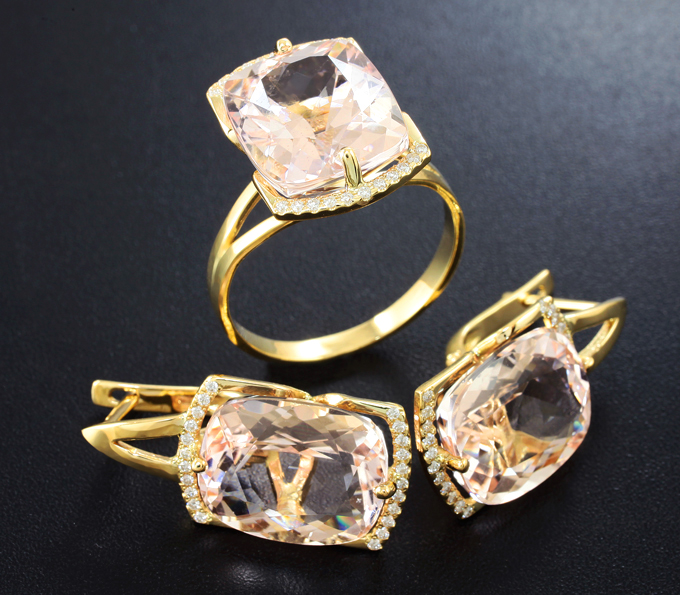 Комплект с морганитом 28,45 карата и бриллиантами