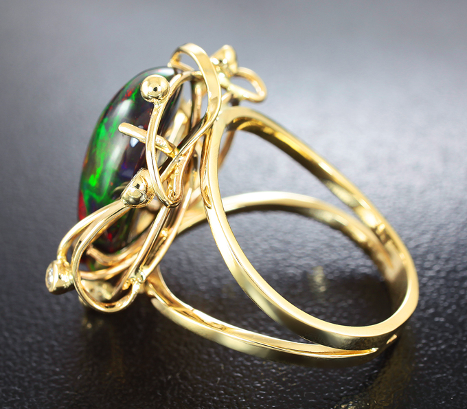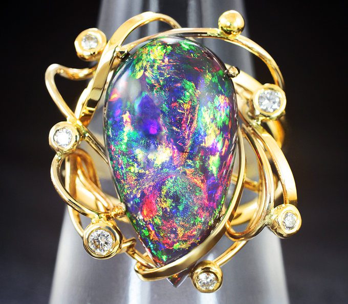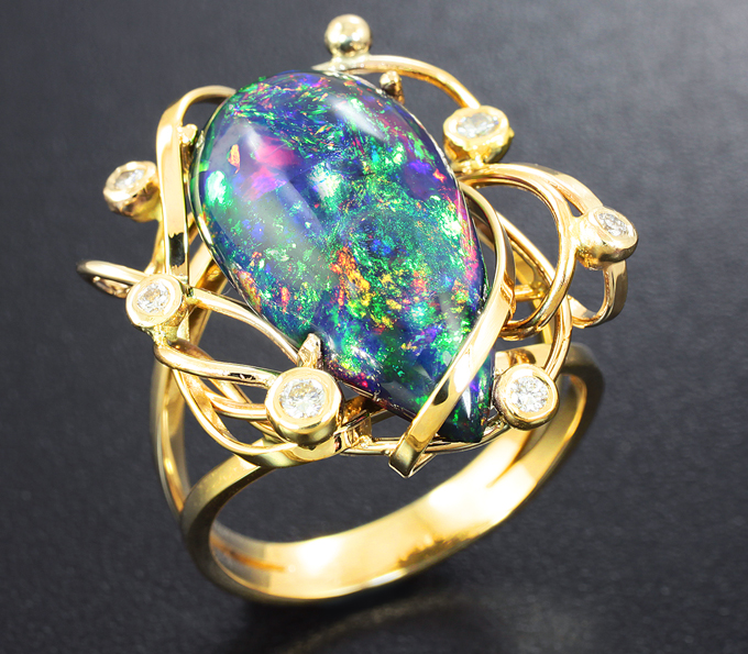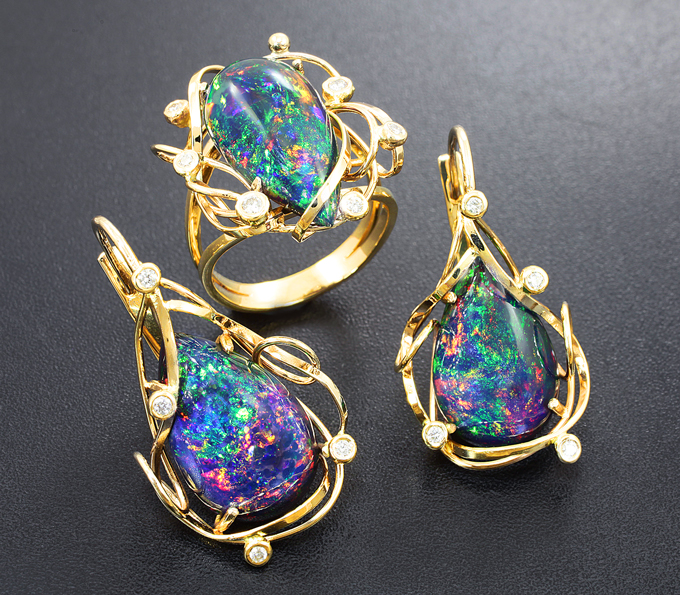 Комплект с кристаллическими черными опалами 17,35 карат и брилилантами