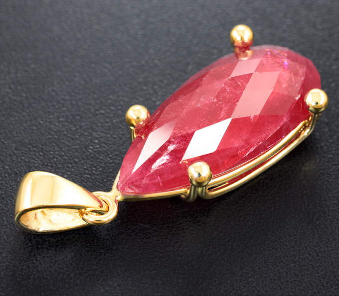 Вашему вниманию предлагается кулон из желтого золота 585 пробы с родонитом! Размеры кулона с петлей 35 х 13 мм. Вес изделия 5,2 г. Ниже приводятся ювелирные характеристики вставки.