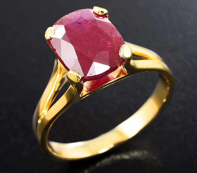 Вашему вниманию предлагается кольцо из желтого золота 585 пробы с крупным рубином! Площадка 10 х 8 мм, высота 7 мм. Вес изделия 3 г. Размер 16,75. Ниже приводятся ювелирные характеристики вставки.