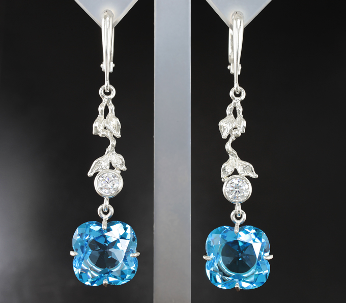 Вашему вниманию предлагаются серьги из стерлингового серебра (925 проба) с голубыми топазами и кубиком циркония! Диаметр дополнительной инкрустации 2 мм. Размеры серег с петлей 60 х 15 мм. Вес пары 10,2 г.