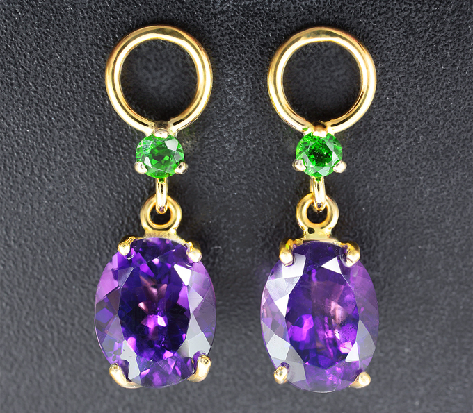 Подвески для серег с уругвайскими аметистами 4,95 карата и диопсидами