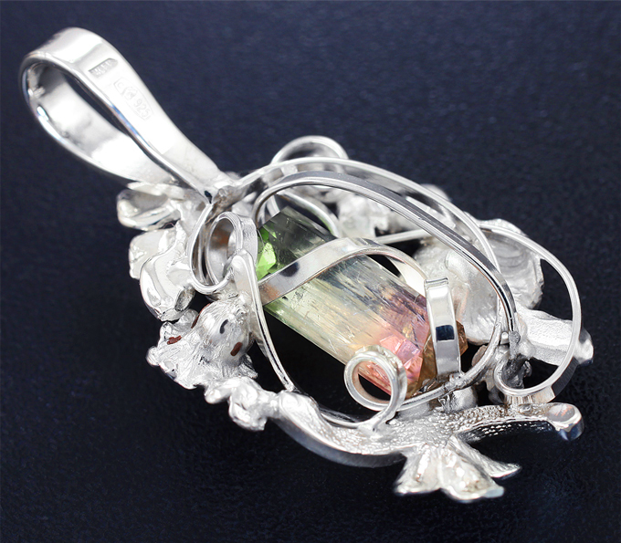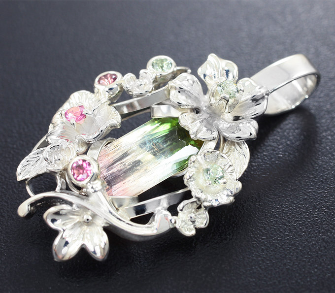 Кулон с трехцветным, розовым и зелеными турмалинами