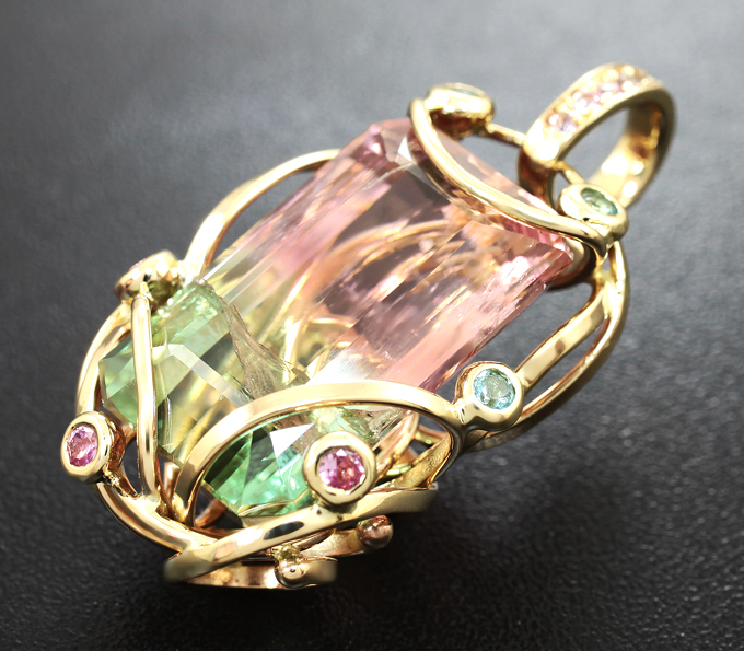 Комплект с турмалинами 44,61 карата, розовыми сапфирами и апатитами