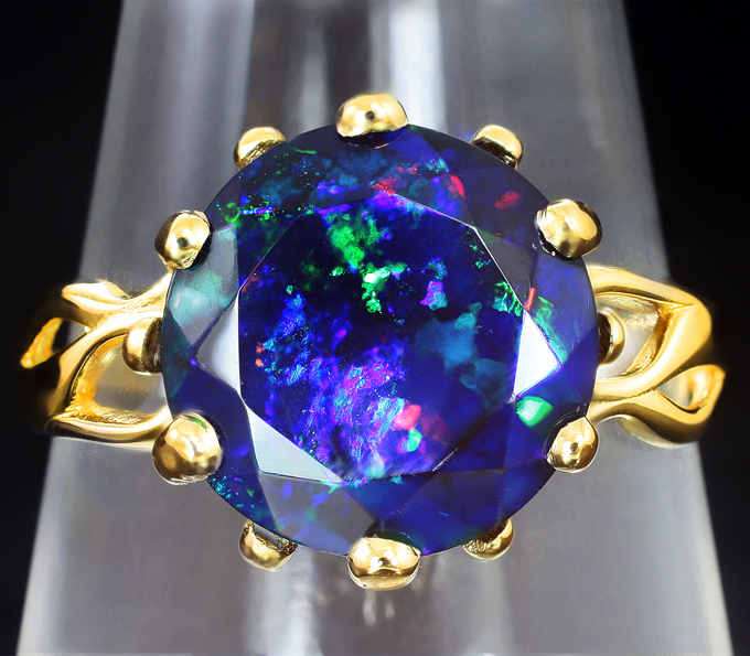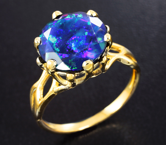Кольцо c ограненным черным опалом 2,77 карата