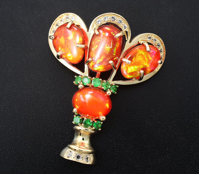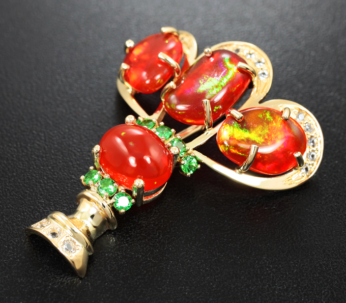 Кулон с опалами 5,26 карата, цаворитами гранатами и бесцветными топазами