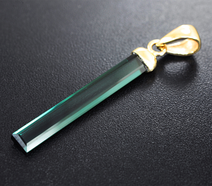 Вашему вниманию предлагается кулон из желтого золота 585 пробы с чистейшим индиголитом турмалином! Размеры кулона с петлей 42 х 5 мм. Вес изделия 1,5 г. Ниже приводятся ювелирные характеристики вставки.