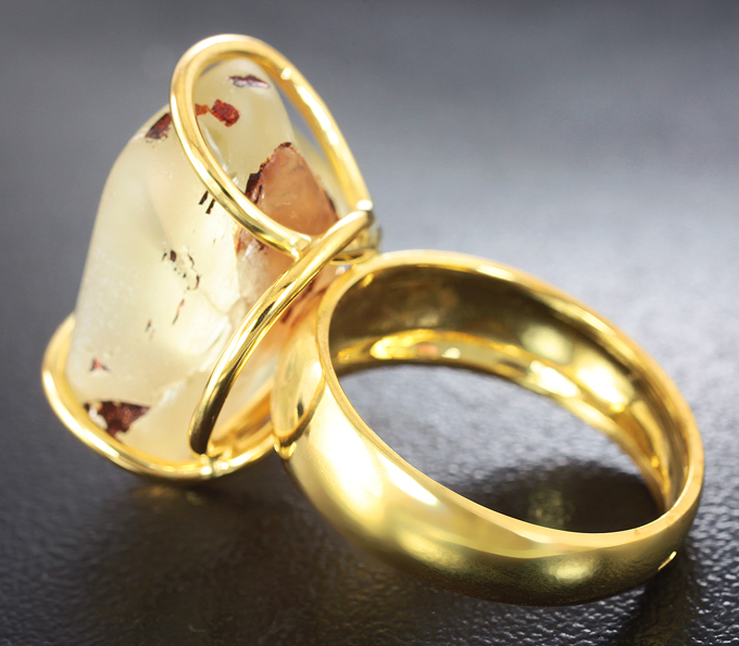 Вашему вниманию предлагается кольцо из желтого золота 585 пробы c орегонским солнечным камнем с включением меди! Изделие позолочено. Площадка 21 х 17 мм, высота 13 мм. Вес изделия 8,6 г. Размер 17. Ниже приводятся ювелирные характеристики вставки.