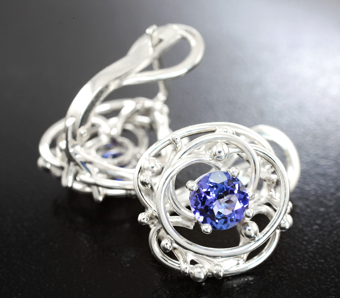 Вашему вниманию предлагаются серьги из стерлингового серебра (925 проба) с танзанитами 2,05 карата! Диаметр вставок 6 мм. Площадка серег 17 х 17 мм. Вес пары 7,9 г.