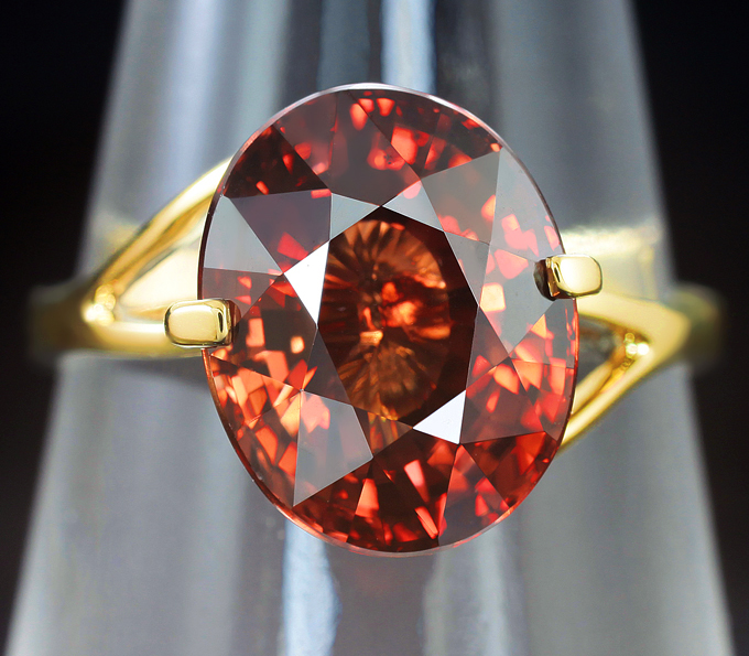 Вашему вниманию предлагается кольцо из желтого золота 585 пробы с крупным оранжевым цирконом! Площадка 11,4 х 11 мм, высота 9 мм. Вес изделия 3,8 г. Размер 17. Ниже приводятся ювелирные характеристики вставки.