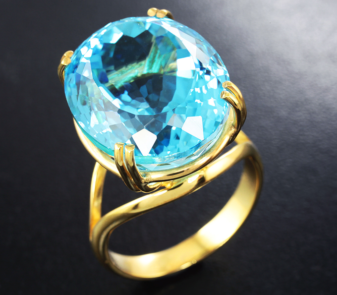 Кольцо с крупным голубым топазом 31,44 карата