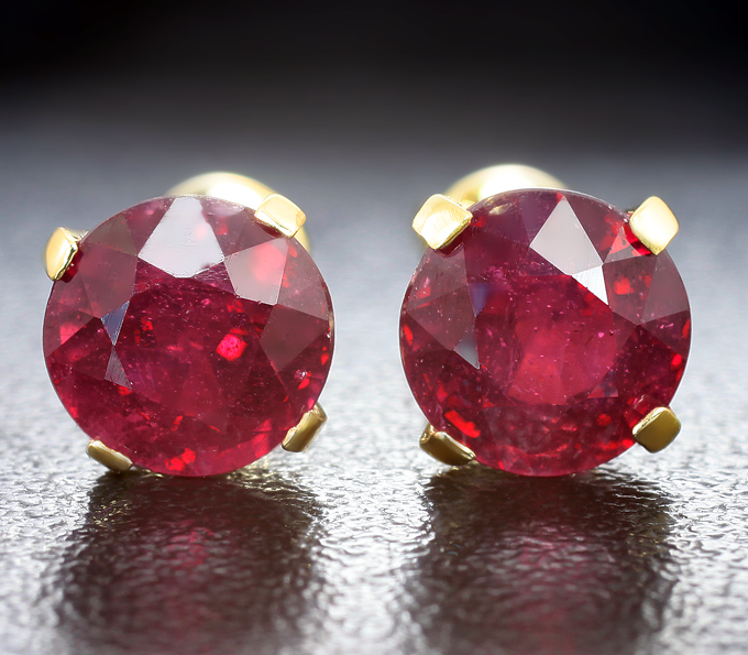 Вашему вниманию предлагаются пусеты из желтого золота 585 пробы с рубинами 4,39 карата! Диаметр вставок 7 мм. Диаметр пусет 7 мм. Вес пары 2,8 г.