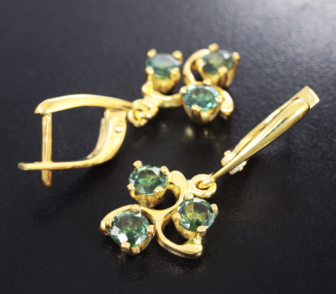 Вашему вниманию предлагаются серьги из стерлингового серебра (925 проба) с зелеными сапфирами! Изделие позолочено. Размеры серег с петлей 32 х 14 мм. Вес пары 5,5 г. Ниже приводятся ювелирные характеристики вставок.