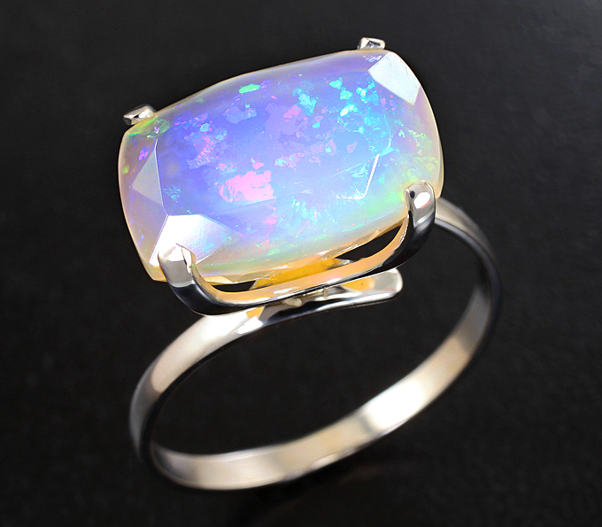 Кольцо с крупным ограненным эфиопским опалом 4,5 карата