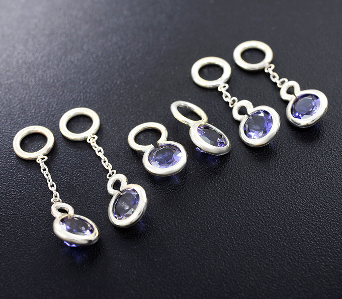 Вашему вниманию предлагаются подвески для серег из стерлингового серебра (925 проба) с иолитами! Размеры подвесок с петлей 12 х 6 мм / 20 х 6 мм / 24 х 6 мм. Общий вес 2,5 г. Ниже приводятся ювелирные характеристики вставок.